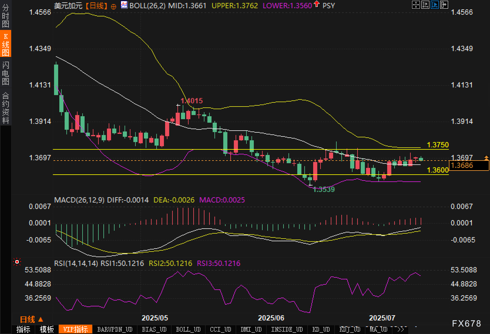 群体心理层面,核心通胀持续粘性令市场倾向于认为利率将在较长时间内保持高位,这限制了对加元大幅升值的预期;另一方面,汇价在1.3650-1.3750区间的反复震荡,也加剧了短线资金的观望心态,情绪波动被压制,未出现明显恐慌性抛售或追涨杀跌行为。