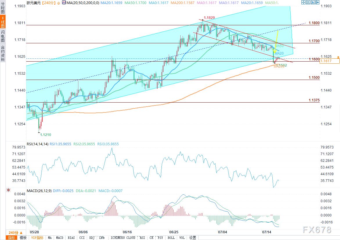 若今日PPI数据弱于预期(低于2.5%),或欧元区经济信心数据(7月16日发布)超预期,欧元/美元可能反弹至1.1700。交易者可在1.16附近逢低买入,止损设在1.1550,目标1.1660-1.1700。
