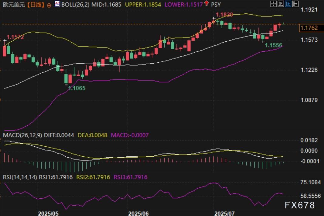 从技术图形来看,分析指出,EUR/USD已重新站上1.17,14日相对强弱指数(RSI)也维持在62附近,表明当前汇价上行动能温和延续;若能突破1.1829阻力位,则上看1.1900水平;而下方支撑则依次位于1.16、1.1535和1.1500;