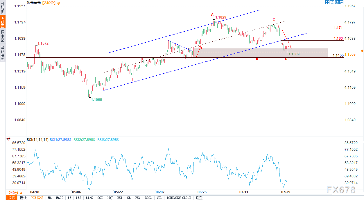 在4小时时间框架内,相对强弱指数(RSI)指标已经跌入超卖区域。