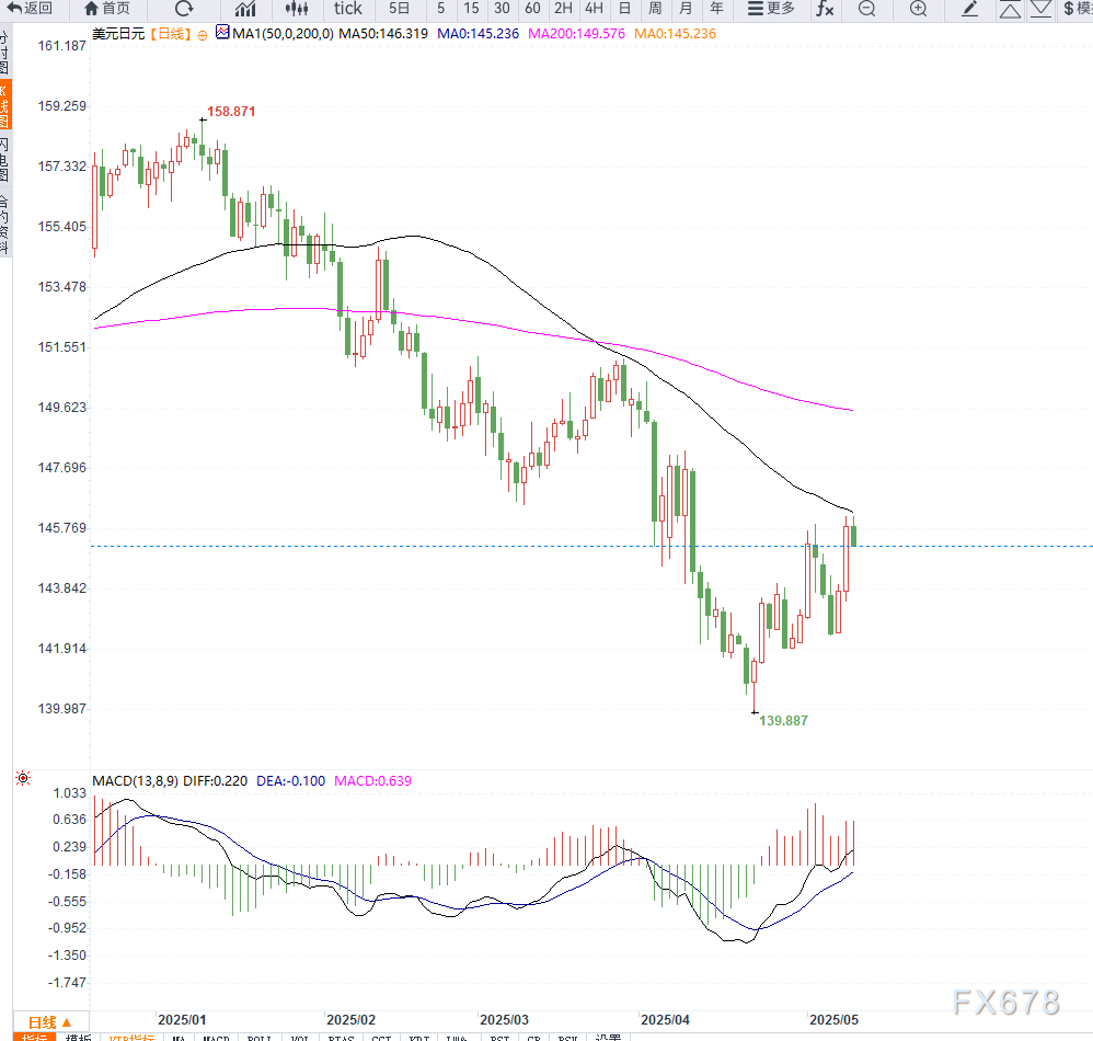 与此同时,美联储在本周维持利率不变,并释放鹰派暂停信号,削弱市场对年内降息的预期。在此背景下,美元指数升至四周高点,加之美英贸易协议与美中谈判进展缓解经济放缓担忧,整体风险偏好上升,限制日元升值空间。