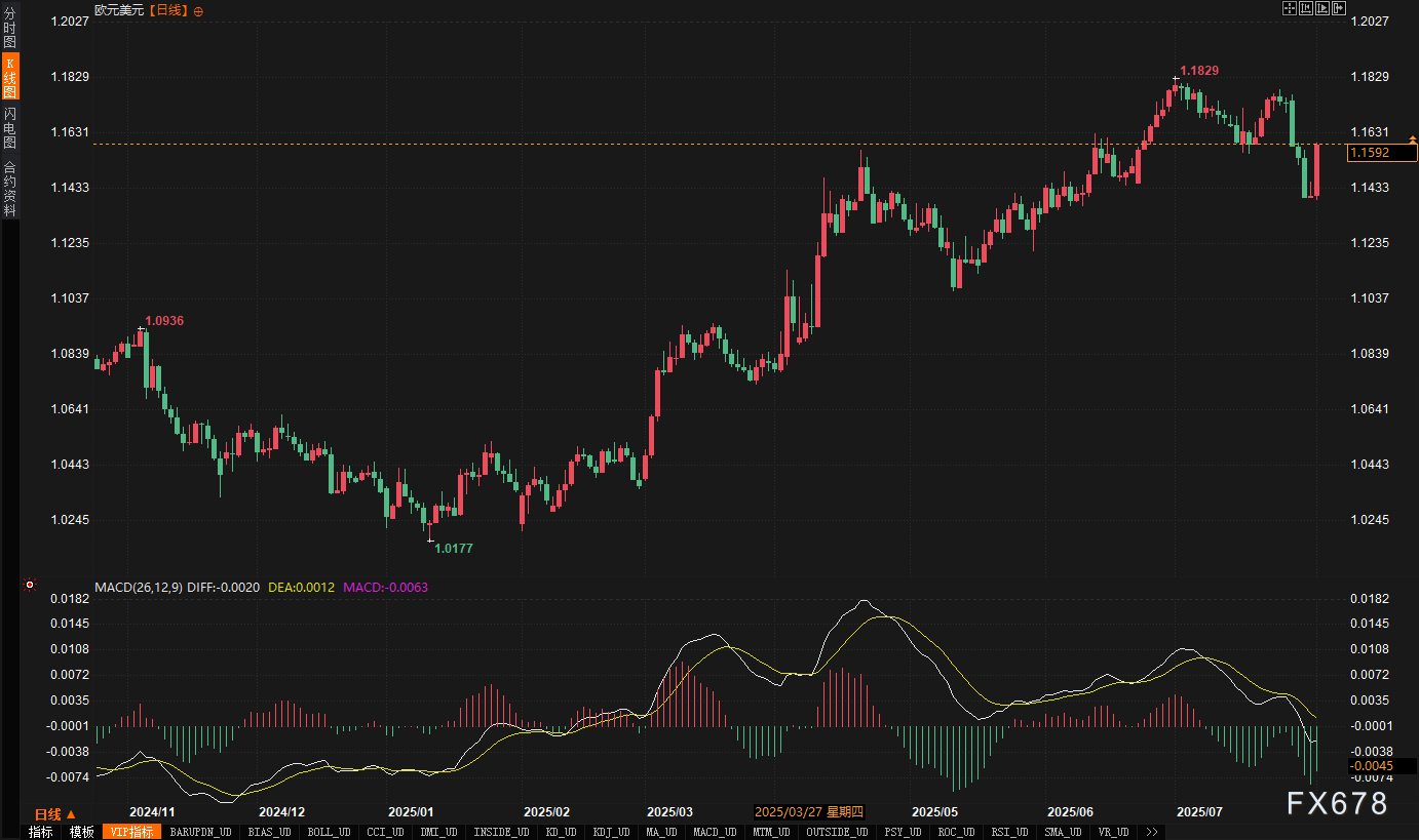 美欧贸易协议:美国对欧盟产品征收15%关税,钢铝铜等50%,欧盟承诺购买2500亿美元美国能源产品并放宽对美农产品监管。市场认为协议对欧盟不利,欧元承压。