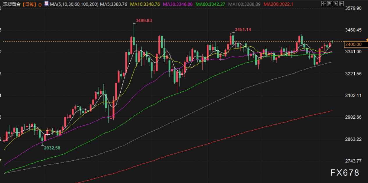 周五(北京时间8月8日),现货黄金交投于3400美元/盎司附近,金价周四升至逾两周最高,美国总统特朗普的关税生效,以及美国就业数据强化降息预期,提振了避险需求;美原油交投于63.86美元/桶附近,油价在周四连续第六个交易日下跌,此前克里姆林宫称俄罗斯总统普京将在未来几天会见美国总统特朗普,从而提高了通过外交途径结束乌克兰战争的预期。