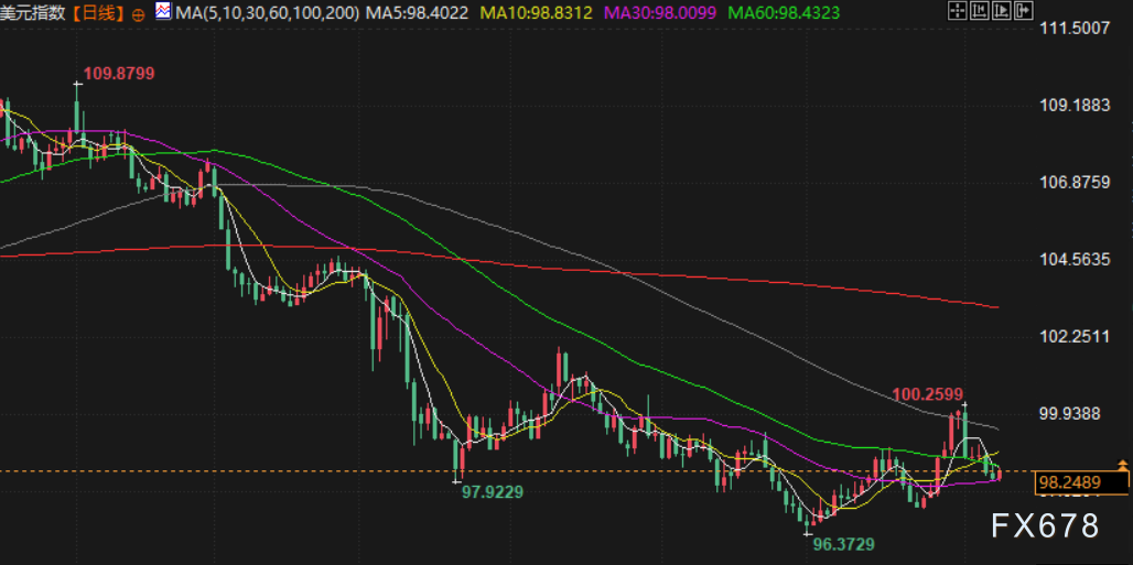 尽管如此,美元指数周五还是上涨了,Osborne说这可能是盘整,没有新的消息推动美元指数的走向。美元指数日内尾盘上涨 0.21%,报 98.19 点,本周下跌约0.5%。