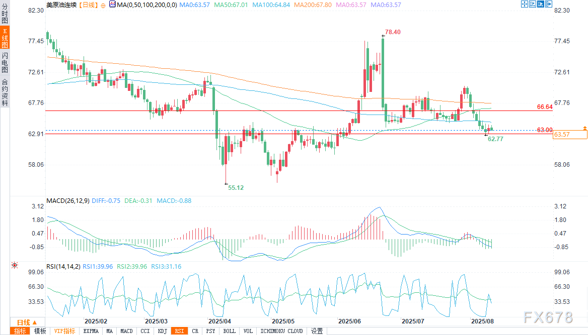 交易商不能忽视周五特朗普与普京计划在阿拉斯加举行的会晤。俄乌冲突的头条新闻风险仍然很大——推动和平可能会缓解制裁压力,而谈判破裂则可能意味着对印度等俄罗斯石油买家实施更严厉的惩罚。德国商业银行已经警告称,如果周五的会晤没有取得进展,次级制裁可能会扩大。这类事件无论图表走势如何,都可能在一夜之间导致油价暴涨或暴跌。