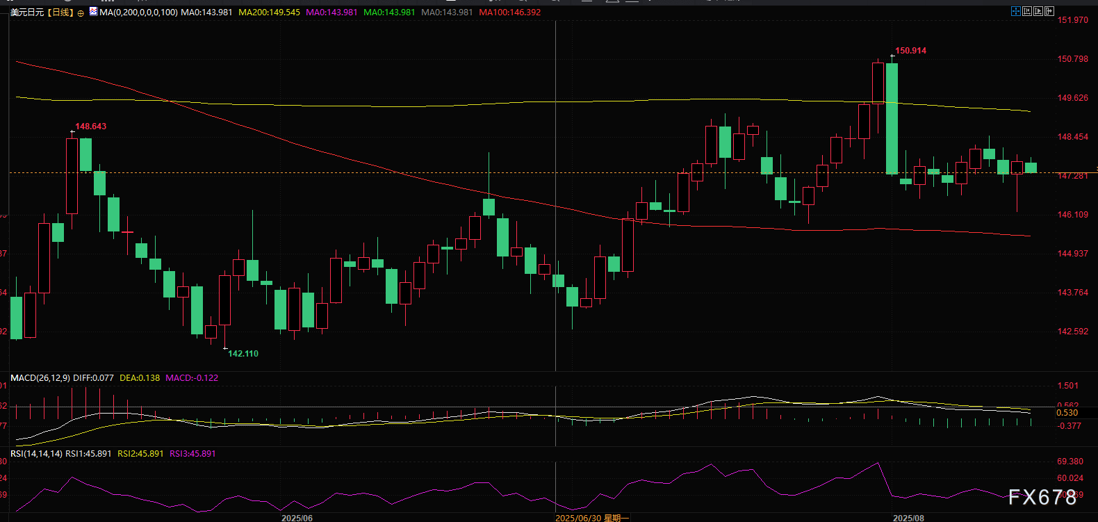 美元兑日元周四纽约时段逆转了日内早些时候逾100点的跌势,重新回到近期145.80-149.00区间的中轨区域,该区间介于100日与200日均线之间。尽管经济数据和央行政策预期将继续影响该货币对走势,但技术派交易员或可重点关注该区间的突破信号,以捕捉后续高概率行情——若向上突破200日均线,则可能打开上行空间,目标指向151.50中轨的50%斐波那契回撤位;反之若向下破位,则初步目标将指向6月末低点143.00附近。