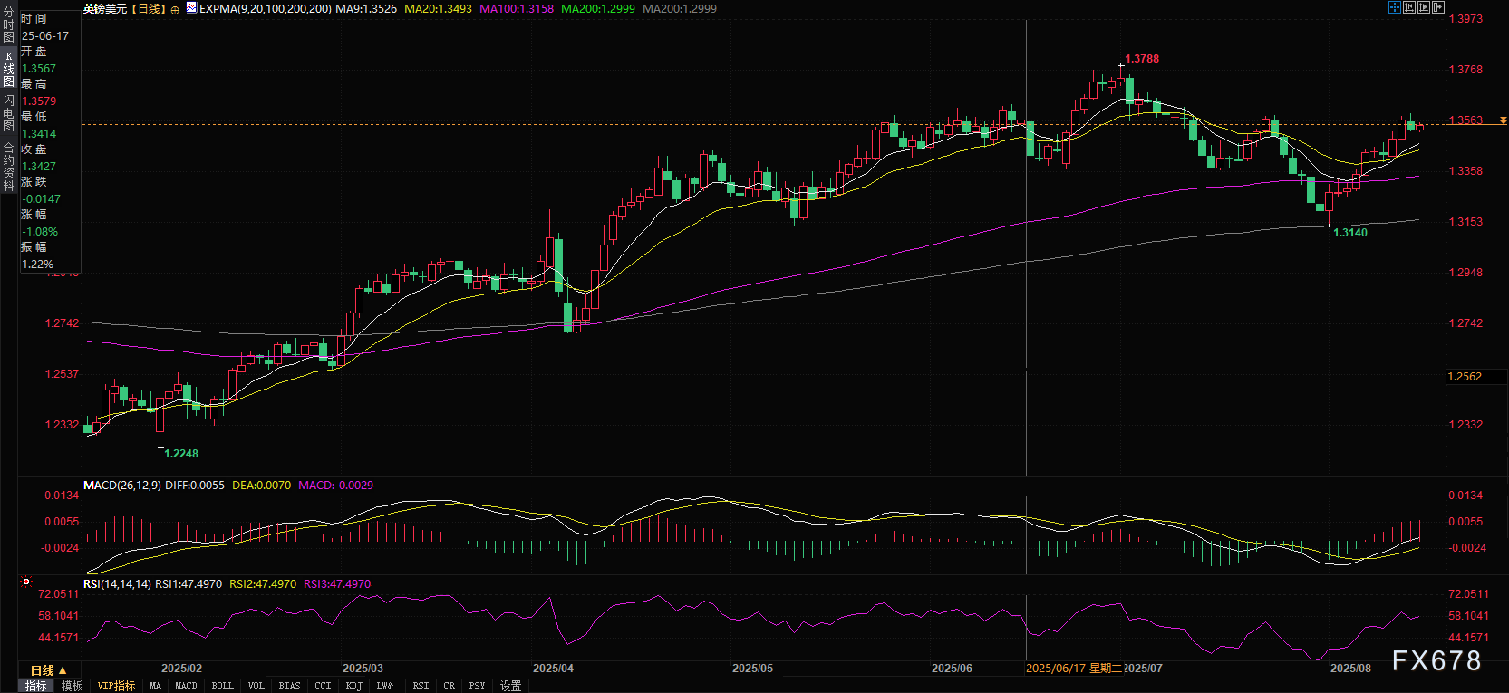 关键支撑位关注8月11日低点1.3400,而上行阻力位则看向7月1日高点1.3790附近。