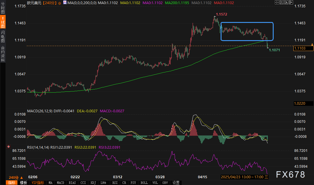欧元短期仍面临下行压力,但超卖后可能迎来修正反弹,建议关注1.1050支撑位的市场反应。