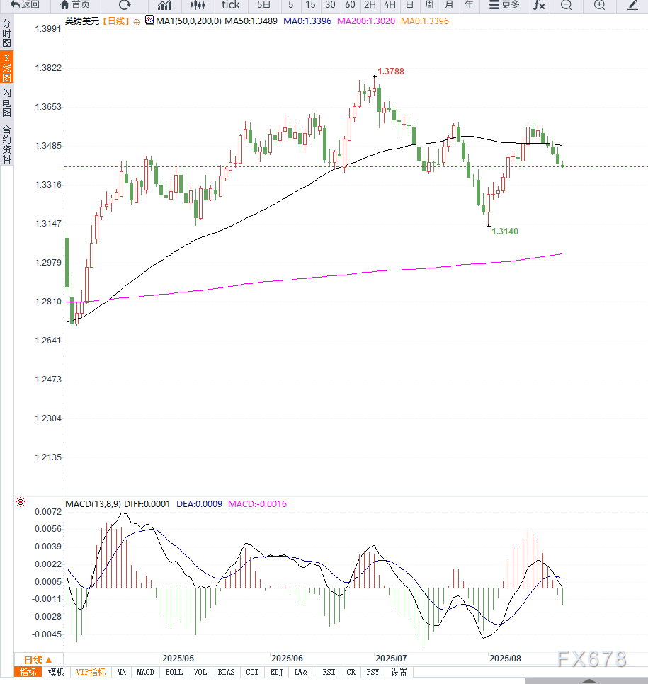 若鲍威尔偏鹰,美元可能再次走强,英镑承压下探1.3300;若言论温和,则英镑或在1.3450之上企稳。因此,短期保持谨慎,关注1.3380至1.3520区间的突破方向。