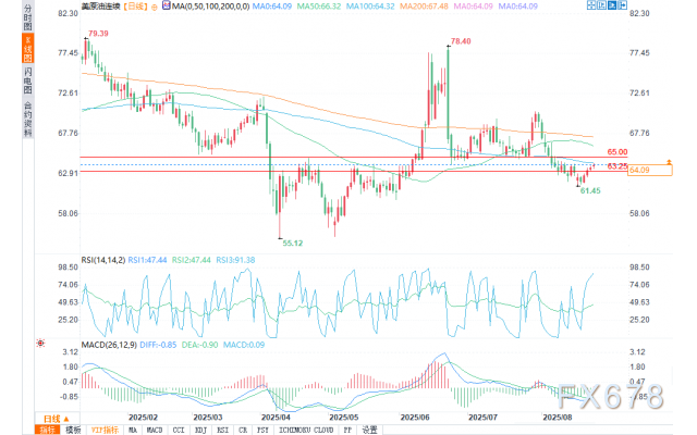 exness外汇官网——周一(8月25日),WTI原油期货小幅走高,逐渐积累温和上行动能,盘中上涨0.45美元至64.11美元,涨幅0.71%。目前63.25美元成为短期支撑位,上涨行情则面临多重阻力:首先是64.56美元,其次是65.00美元,此外还有65.41美元和66.18美元等次要阻力位。