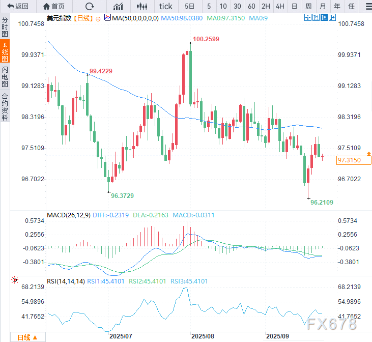 美元指数技术面结构脆弱,动能不足陷入震荡格局,市场待后续美联储官员讲话与数据发布寻下一步指引。