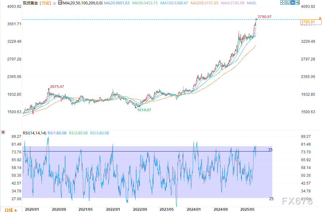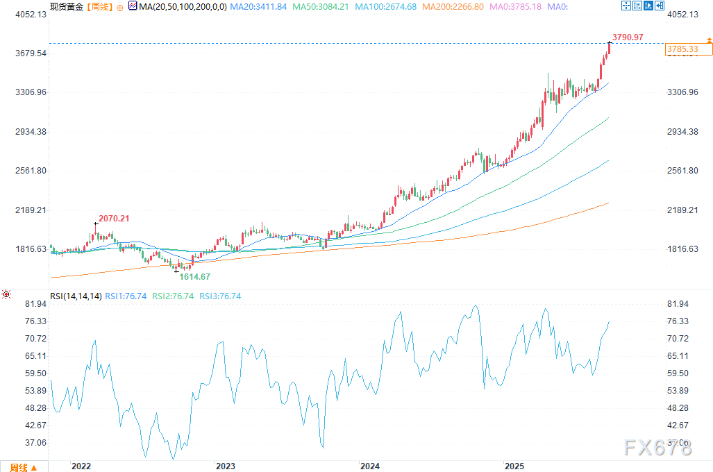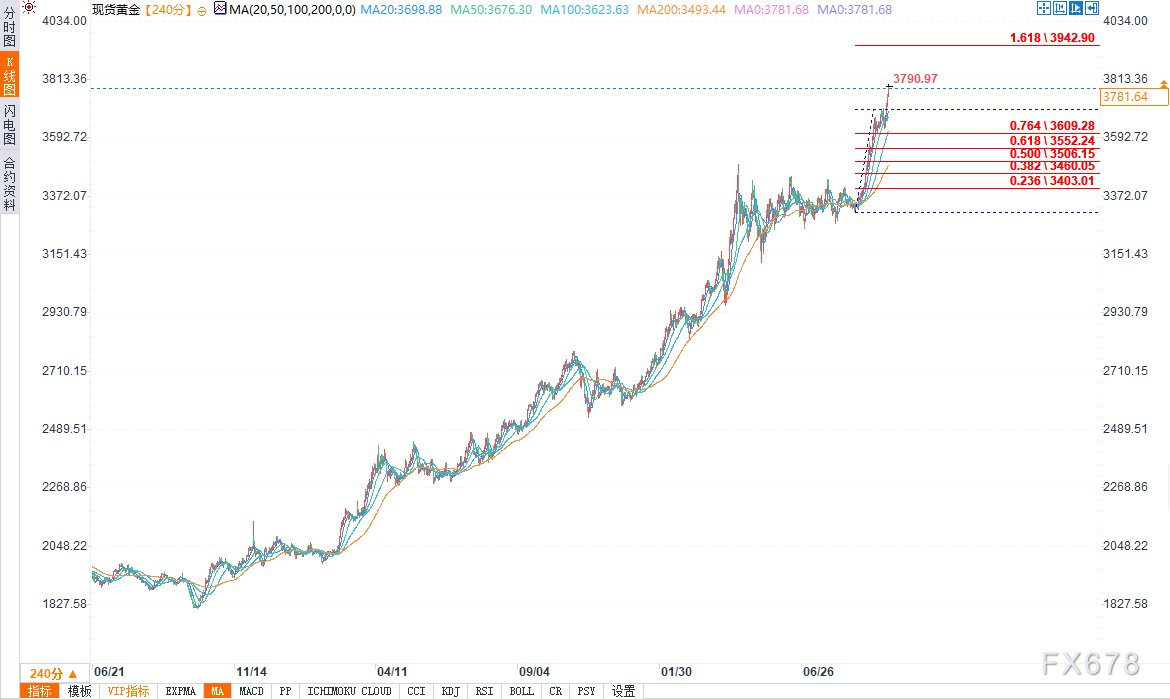 exness外汇官网——当前,地缘政治紧张局势加剧、避险资产需求上升、股票与加密货币市场风险偏好下降,多重因素共同作用,再次推动黄金价格走高。每盎司黄金现货价格已创出历史高点3790美元;从上周五开盘到周二欧洲市场活跃交易时段,金价累计涨幅超过4%。