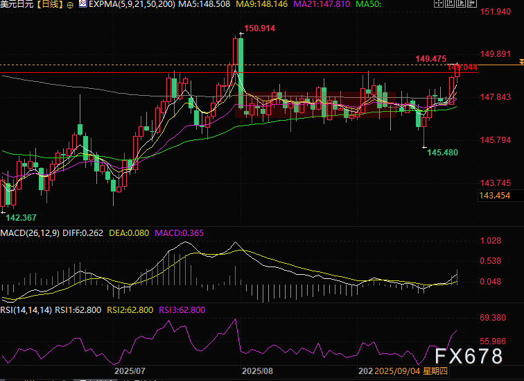 值得注意的是,周三受到鲍威尔、旧金山联储主席戴利对降息路径秉持审慎态度影响,美元兑日元涨0.85%。近期日元一直在贬值,并且技术图形上已经要走出贬值趋势了,要知道之前受到日本央行维持利率不变以及小泉进次郎对维持日本货币政策正常化的支持,日元本应对美元表现强势。