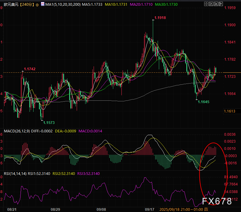 从欧元兑美元的技术面来看,货币对呈现温和上行动能。4小时图相对强弱指数(RSI)已突破50关口,但指数平滑异同移动平均线(MACD)始终运行于零轴下方;在当前谨慎的市场情绪下,这一反弹趋势的根基仍较为脆弱。