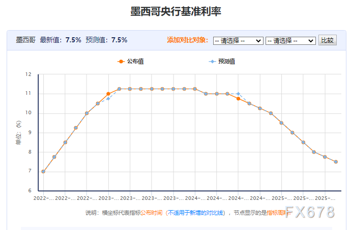 不过,本次投票存在分歧,部分理事会成员反对继续稳步降息,核心原因在于近几个月通胀数据持续温和上行。墨西哥央行同时释放信号:若通胀形势需要,未来会议中将采取更为审慎的操作,这意味着随着物价压力持续升温,激进降息阶段或已临近尾声。