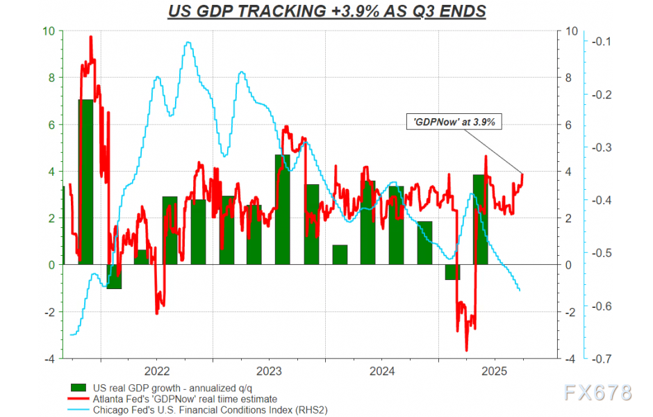除此之外,即使面对着近四年来最为宽松的金融条件,美联储也重启降息。原因何在?因为主席鲍威尔及其团队对劳动市场感到担忧。这一定程度上表明美联储的决策天平已经向疲软的就业数据倾斜,而非强劲的GDP数据。