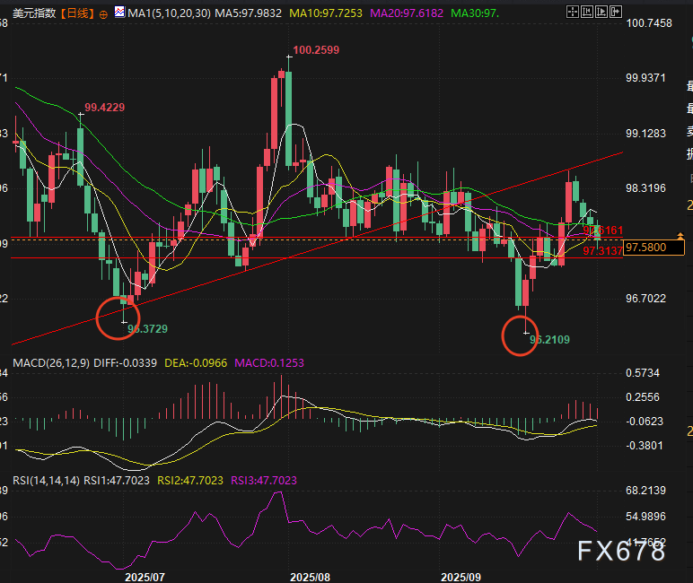 exness外汇官网——周三(10月1日)欧洲时段,受美国小非农ADP数据爆冷的影响,美元指数一度下跌33个点,跌幅一度扩大至-0.33%,目前小幅反弹,跌0.27%交投于97.54附近。