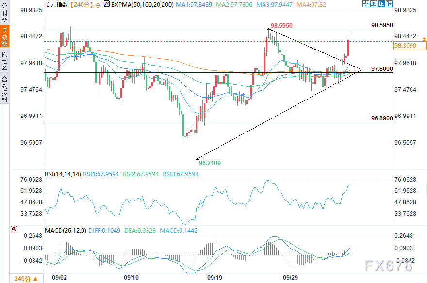 若能明确突破98.595阻力位,美元指数可能进一步上涨,目标看向99.05和99.52。但如果指数未能守住97.80支撑位,则可能回落至97.45甚至96.89。