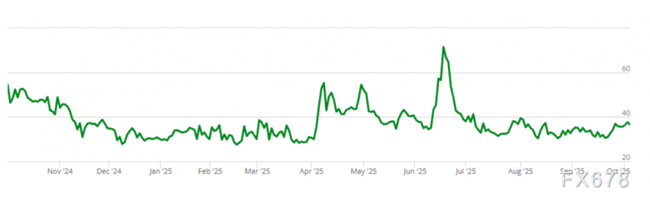 CBOE原油波动率指数近期持续攀升,目前正逼近40点关口,显示原油隐含波动率正稳步上升。这表明市场对油价前景的不确定性加剧,短期价格出现剧烈波动的可能性显著升高。
