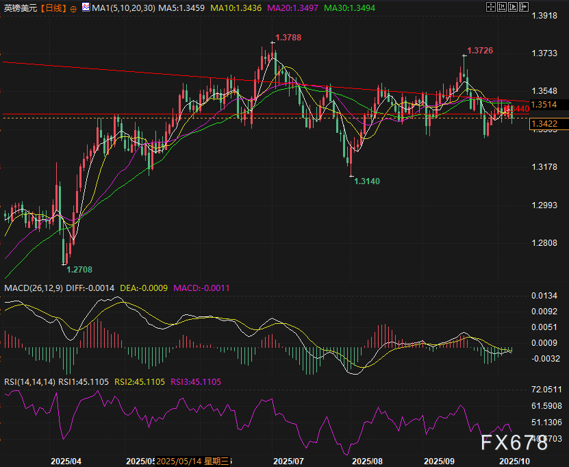 周二交易时段,英镑兑多数主要货币表现承压(澳元、新西兰元等大洋洲货币除外)。随着市场对英国央行在今年剩余时间内再启一次降息的预期不断升温,英镑面临明确的抛售压力。