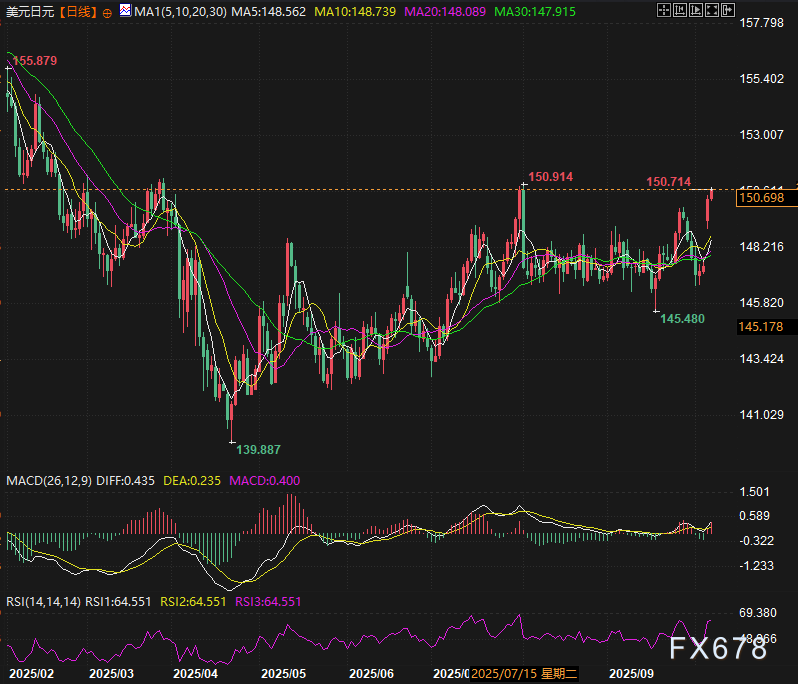 在此次选举中,高市早苗因是唯一支持大规模财政支出的候选人而凸显差异,预计她将在10月中旬的议会会议上正式就任日本首位女性首相。市场对更激进扩张性经济政策的预期,将使日本央行的政策调控陷入困境,进而持续对日元施加下行压力。