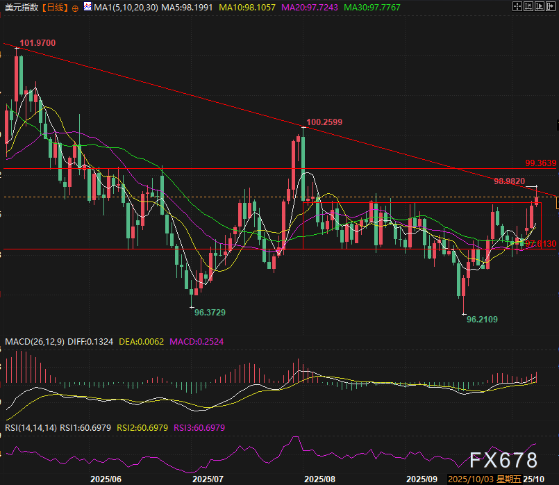 但下周的情况则截然不同——若9月消费者物价指数(CPI)报告(原定10月15日发布)被迫推迟,美元是否会遭遇抛售压力,这一变量值得重点跟踪。