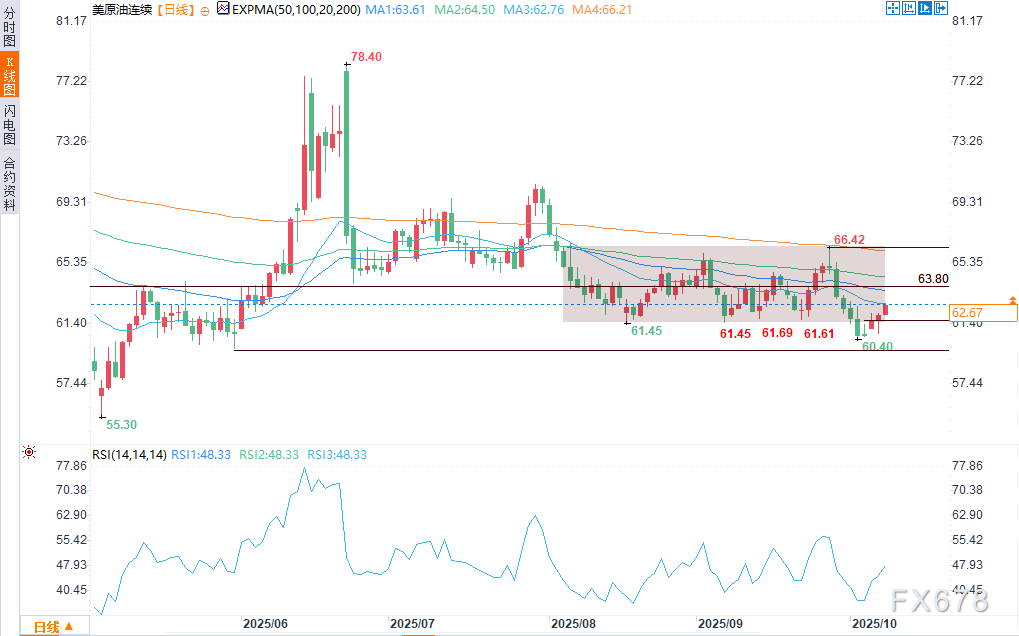exness外汇官网——周三(10月8日),WTI原油期货连续第四个交易日延续反弹态势,从60.40美元至59.91美元的关键支撑区间回升。此次反弹使西德克萨斯中质原油逼近20日移动平均线(62.76美元)。