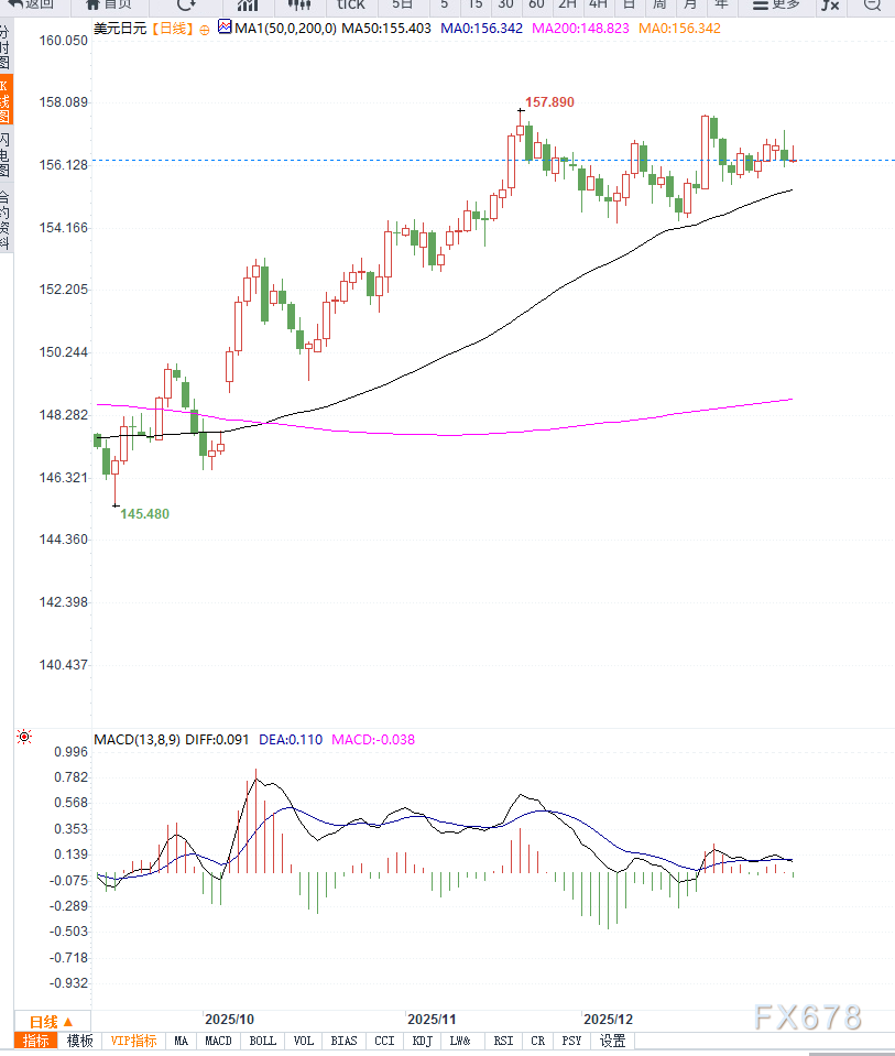 与此同时,日本政府推动的扩张性财政计划引发对财政可持续性的讨论,也在一定程度上削弱了日元的吸引力。 不过,日本央行行长近期重申,若经济和物价走势符合预期,将继续推进政策正常化,这意味着进一步加息的政策选项仍然存在。 利差收窄预期对日元形成中期支撑 在鹰派政策预期推动下,日本国债收益率持续走高,短端与长端利率均刷新多年高位,推动日美利差逐步收窄。 此外,市场对日本当局可能在汇率快速波动时采取稳定措施的预期,也在心理层面抑制了日元的进一步走弱。 美元承压于降息预期,限制汇价上行 美元方面,美联储年内进一步降息的预期持续发酵,令美元反弹动能受限。 最新公布的制造业相关数据表现分化,强化了市场对经济动能放缓的判断。 在降息预期尚未被数据证伪之前,美元整体仍处于防御状态,这对美元兑日元构成一定压制。 有分析人士指出,若美联储降息预期维持不变,美元兑日元的上行空间将持续受限。 非农数据成短线方向关键 本周市场关注焦点集中在美国非农就业报告。 数据结果将直接影响市场对美联储政策路径的判断,从而左右美元走势,并为美元兑日元提供新的方向指引。 从日线结构来看,USD/JPY整体仍运行在上升通道之中,但近期上涨动能明显放缓。价格在前期高位回落后获得支撑,目前维持在通道中下沿区域附近震荡。 日线均线系统由快速上行转为走平,显示趋势进入整理阶段;RSI位于中性偏弱区间,未出现超卖信号,表明下行空间有限,但多头优势也在减弱。 若汇价能守住通道支撑,日线结构仍有利于维持震荡偏强;反之,若有效跌破关键支撑位,中期调整压力将逐步显现。