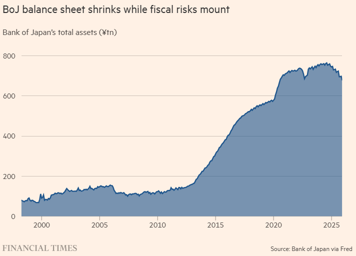 exness官网:在实施量化宽松(QE)的多年间,日本央行为放宽货币环境积累了海量的国债。现在,它正以令人惊讶的速度,允许其中部分持有的债券到期而不进行再融资,实际上将其转回给私营部门投资者——这在本质上就是“量化紧缩”(QT)。
