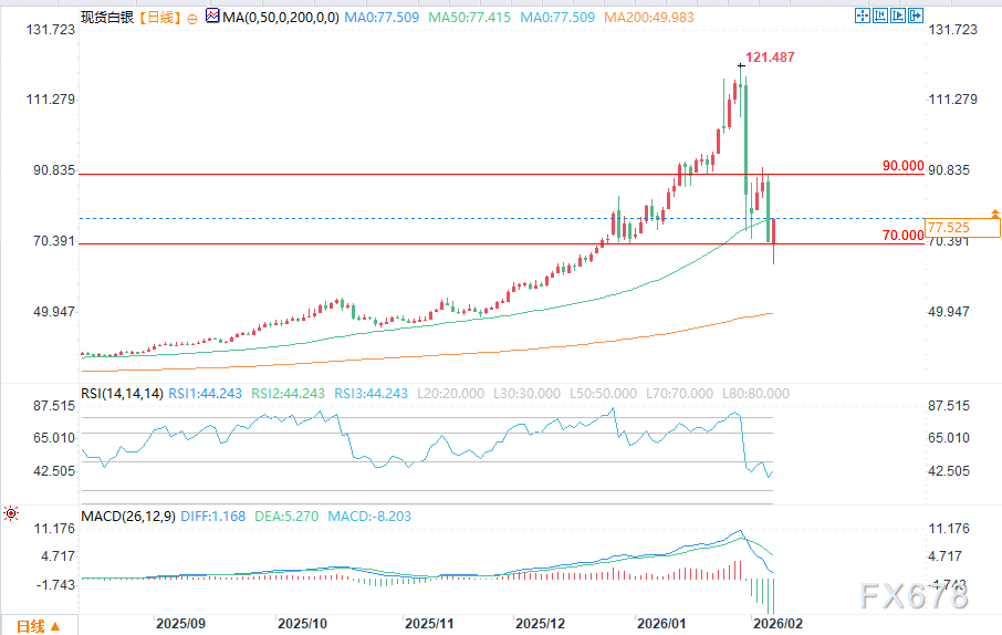exness官网:从技术面来看,白银价格波动性极大,近期一度跌破70美元关口,但随即出现强劲反弹,呈现出一定的支撑迹象。目前,市场正在寻找一个稳定的整理区间。若白银价格能够稳住在70美元上方,并持续保持该水平的支撑,后续可能迎来进一步的反弹。关键支撑位仍在65-66美元附近。