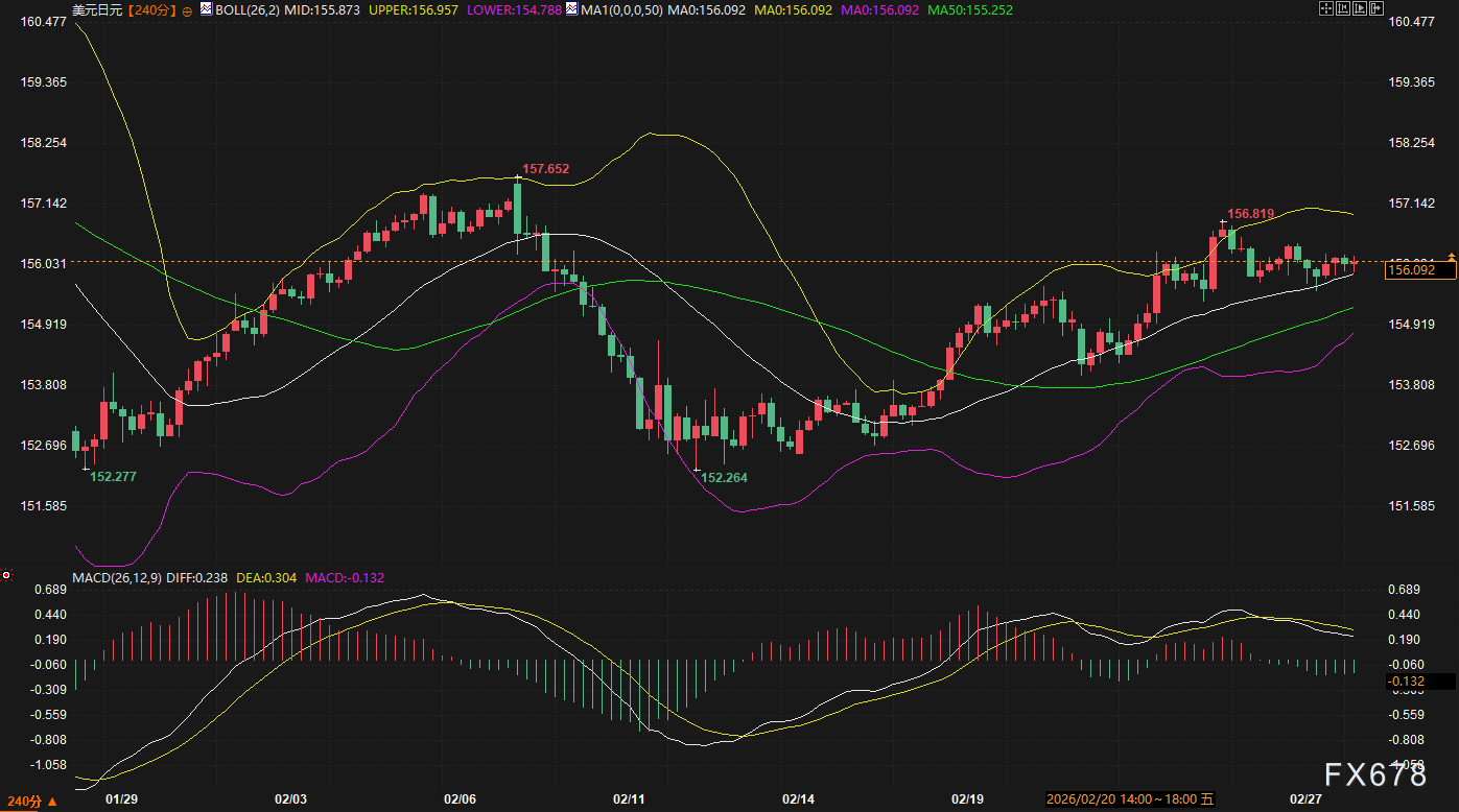 外汇市场(美元、日元): 美元指数: 目前在97.62附近震荡。虽然受到特朗普关税言论引发的部分避险支撑,但短线动能偏弱。 日元(USDJPY): 报价156.092。尽管日元具备避险属性,但由于日本高度依赖石油进口,油价飙升可能引发对日元购买力的担忧,导致日元波动性大幅增加。