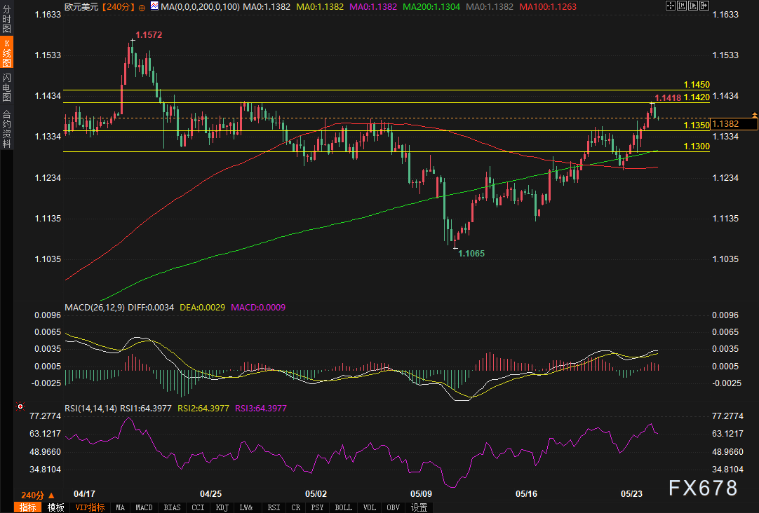 上行阻力:1.1420(近期高点)、1.1450(心理关口)
