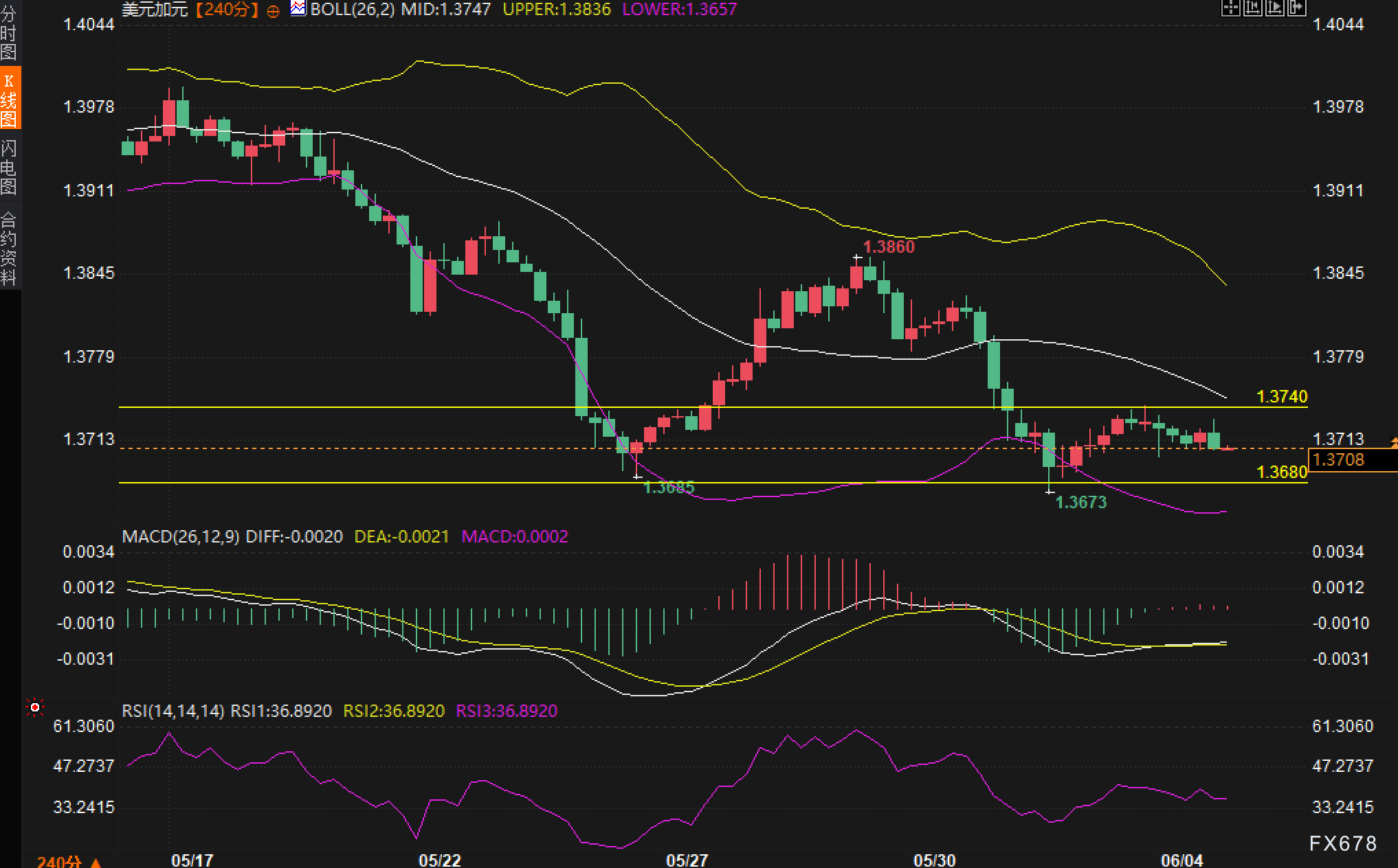 exness外汇官网——周三(6月4日),美元兑加元(USD/CAD)欧洲时段维持在1.3700附近整理,前期大幅回落后步入低位横盘格局。近期汇价已从高点1.4400区域持续回落,在1.3680–1.3740区间震荡整理。北京时间周三晚间,加拿大央行将公布最新利率决议,市场普遍预期其将维持基准利率在2.75%不变,届时行长蒂夫·麦克勒姆(Tiff Macklem)的讲话也将受到广泛关注。