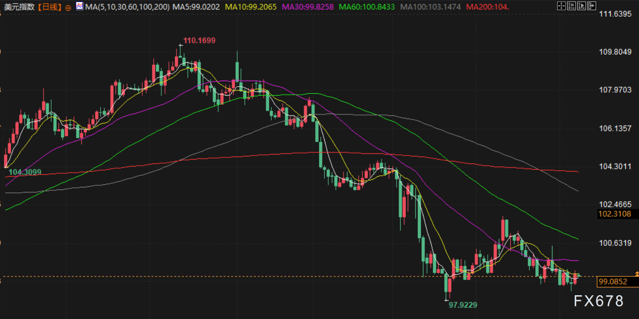 衡量美元兑一篮子货币汇率的美元指数上涨0.53%至99.20,但录得周线跌幅。