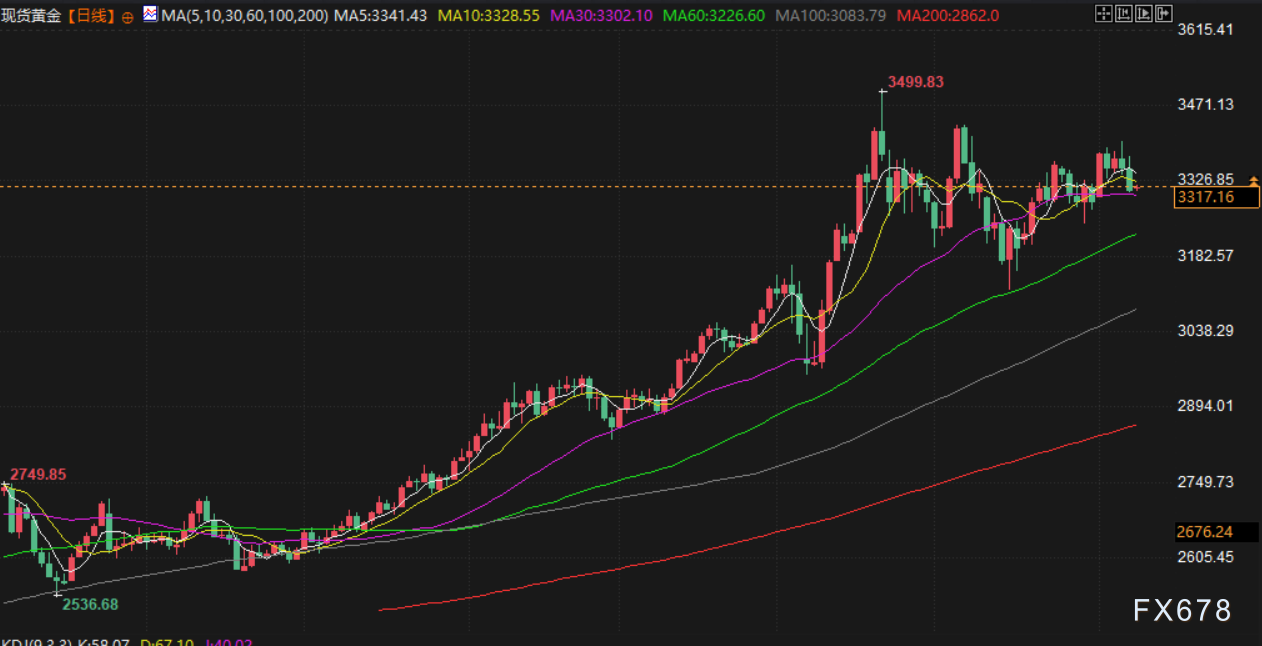 金价上周五下滑超过1%,此前强于预期的美国就业报告打击了美联储今年即将降息的希望,白银一度急升至2012年以来的最高水平。现货金下跌1.1%,至每盎司3316.13美元,美国期金收低 0.8%,结算价报每盎司 3346.60 美元。