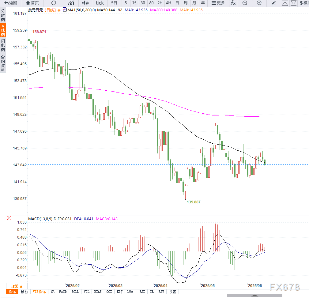 在美联储与日本央行货币政策分化的背景下,日元在本周连续第二日上涨。当前,美元/日元汇率已自前一日两周高点回落,短线跌破144关口,日元的避险属性在当前复杂的贸易与地缘局势中再次凸显。