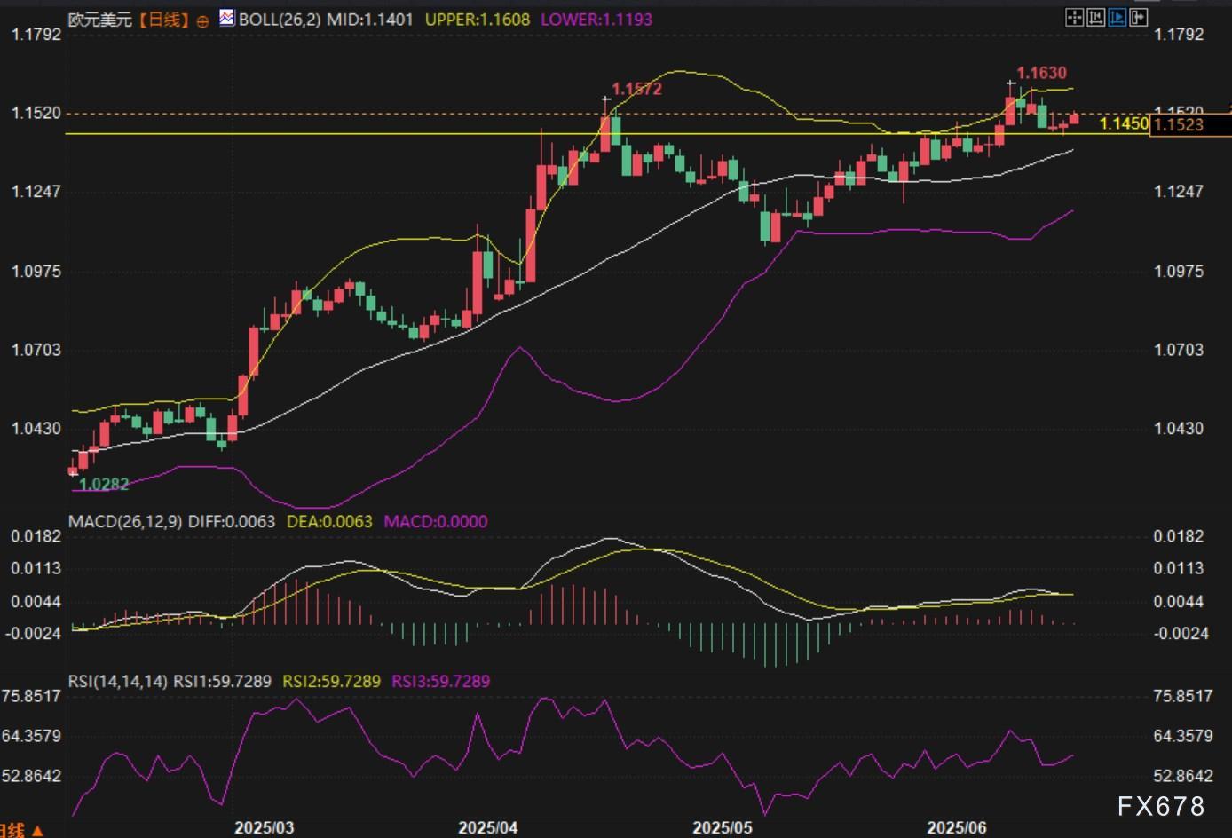短期展望:分析认为未来1-2周内,汇价大概率将维持在1.1400-1.1600区间内震荡。地缘政治局势的任何新发展都可能对汇价产生显著影响。若伊朗核谈判取得积极进展,汇价有望向区间上沿发起冲击;反之,若中东局势进一步恶化,汇价可能重新测试1.14支撑位。