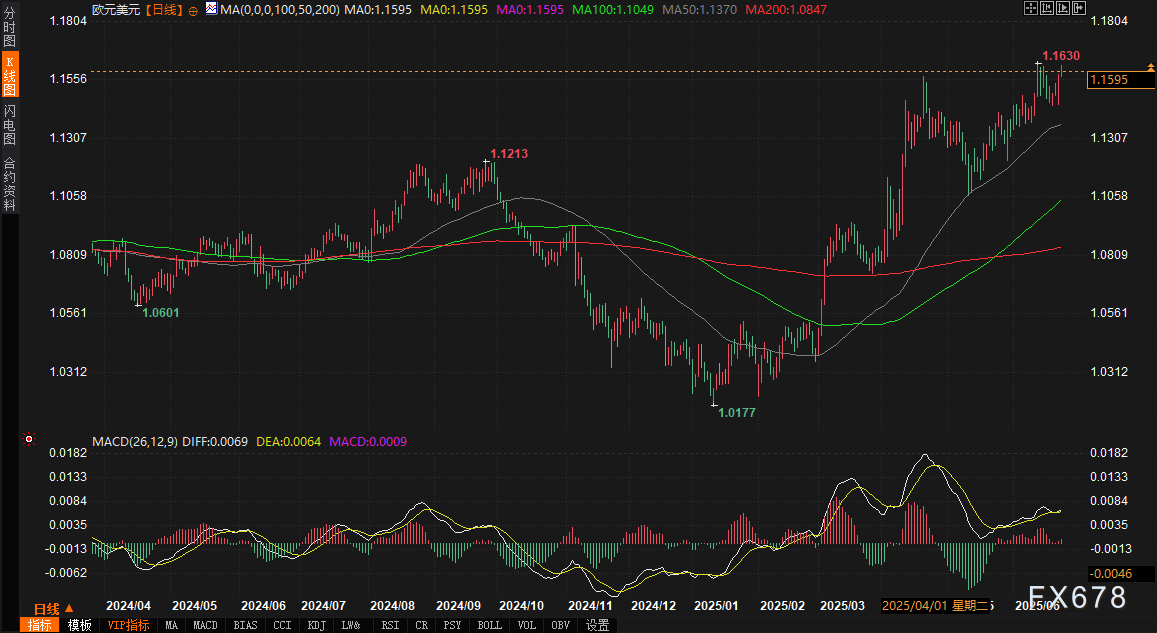 从日线级别观察,EUR/USD已站稳所有关键均线上方(50日/100日/200日均线分别位于1.1370、1.1049、1.0847),中期趋势维持看涨。短期技术形态呈现三大特征: