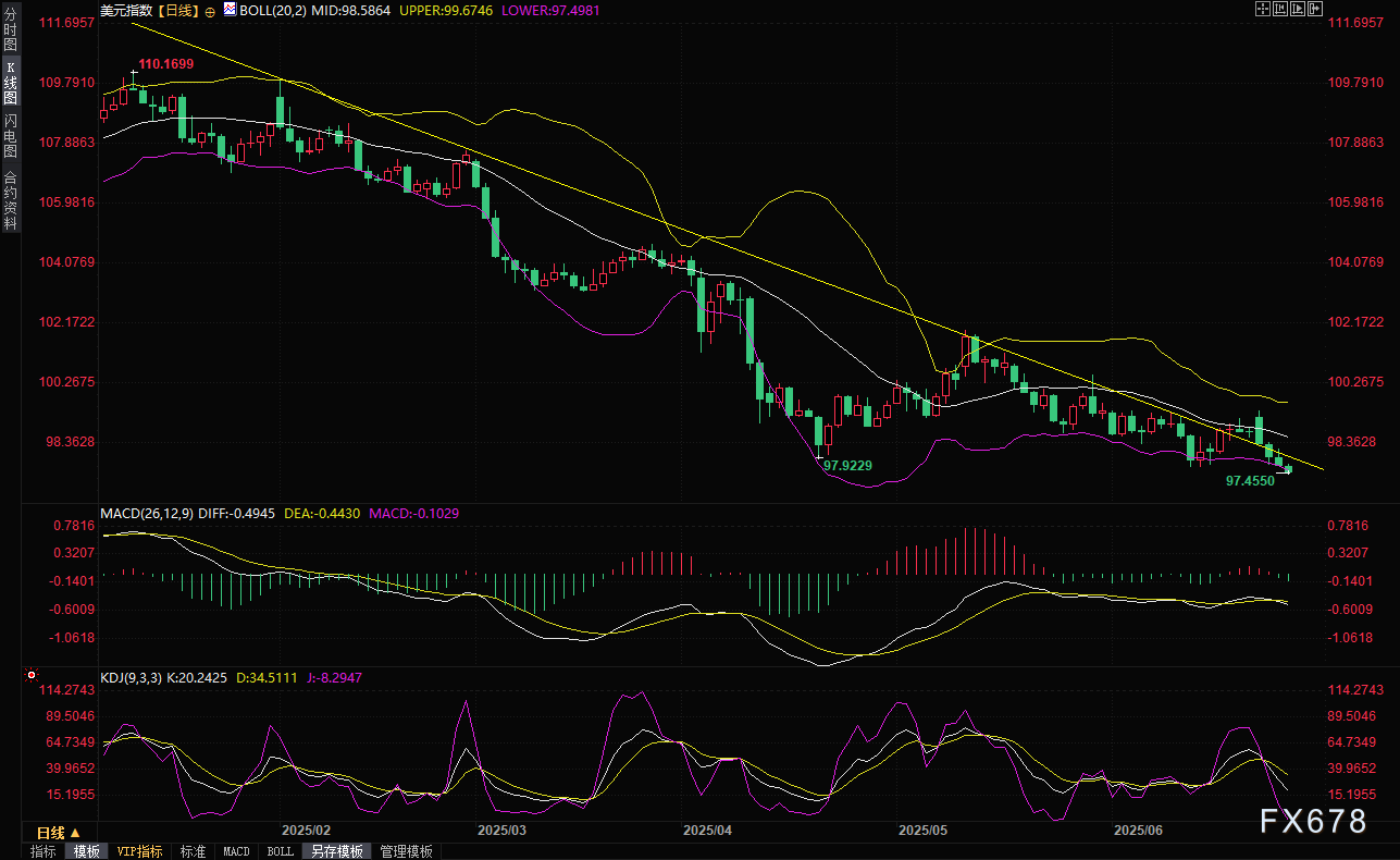 美国总统特朗普的言行无疑为美元的暴跌火上浇油。据《华尔街日报》报道,特朗普正考虑在2025年9月或10月提前选定并宣布美联储主席鲍威尔的继任者,这一举动被外界视为对鲍威尔地位的直接削弱。特朗普周三再次公开抨击鲍威尔,称其表现“糟糕透顶”,而鲍威尔则在参议院听证会上警告,特朗普的关税计划可能推高通胀,对经济构成风险。
