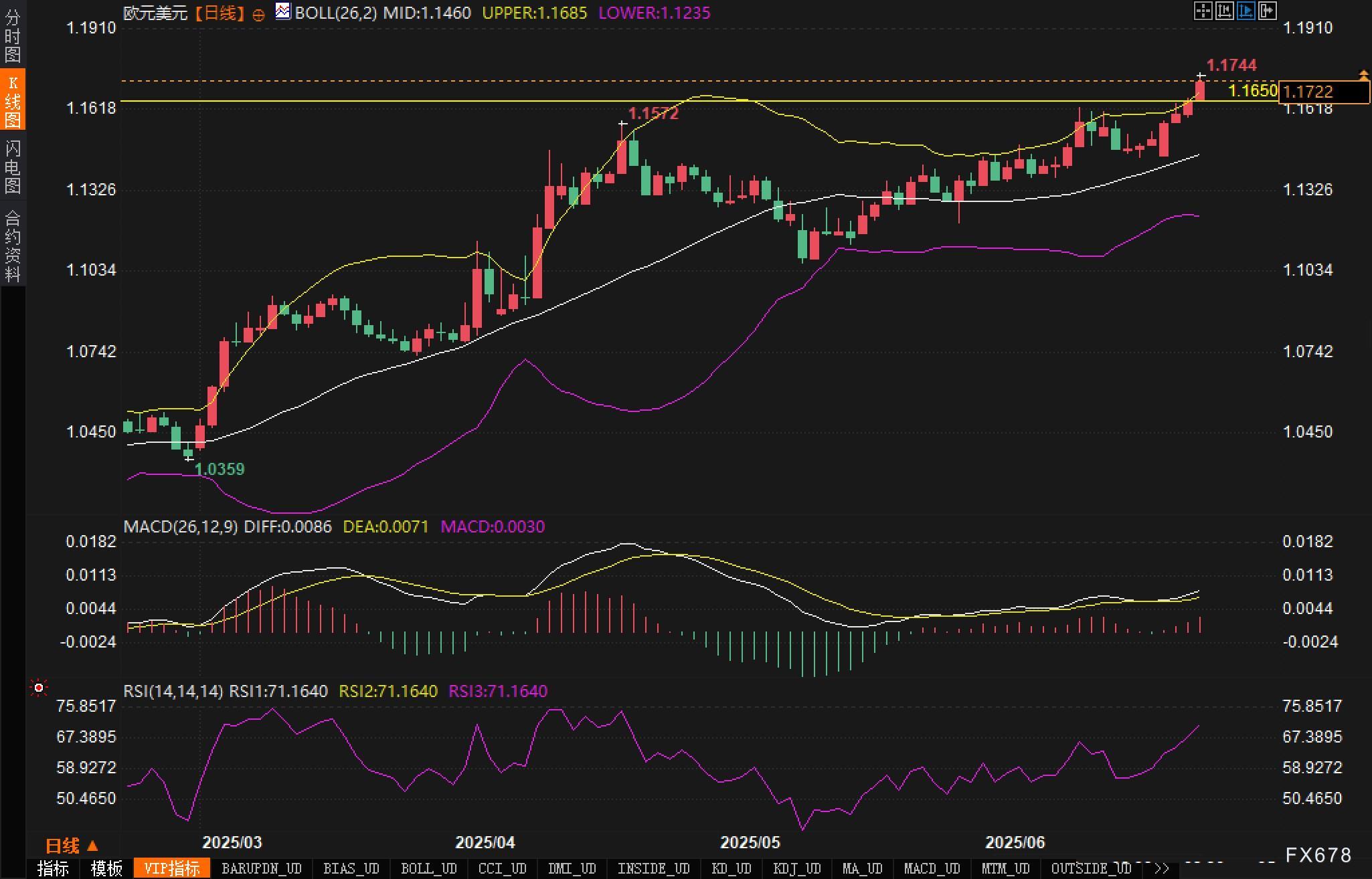 MACD指标上,快慢线交叉向上,红柱重新放大,动能持续增强。RSI指标处于超买区域(71.16),表明短期或有技术性回调需求,但强势结构仍未被破坏。