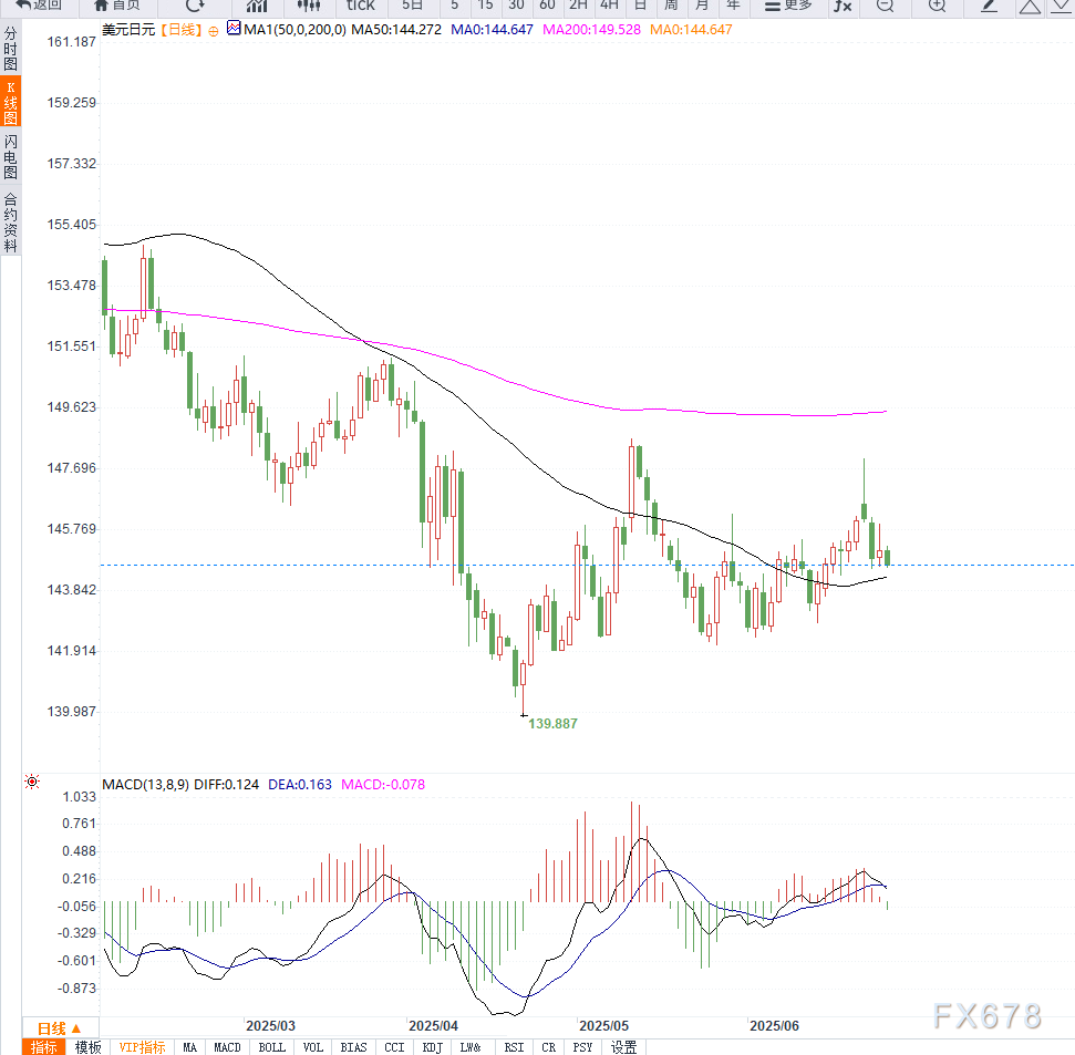 美联储主席鲍威尔表示,尽管近期通胀回落,但新一轮关税政策仍可能抬升物价,政策将维持观望。但市场认为美联储年内将降息至少50个基点,甚至7月降息的概率也接近20%。这一前景进一步打压美元兑日元走势。