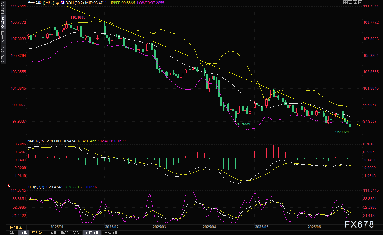 exness外汇官网——美元正经历一场前所未有的低谷,周五(6月27日)美元指数徘徊在三年半以来的最低点附近,交易员们正密切关注美国货币政策的风向转变。与此同时,欧元和英镑强势崛起,守在隔夜触及2021年底以来的最高水平附近,而特朗普即将到来的关税最后期限,更是为市场增添了一层紧张气氛。美联储主席鲍威尔的继任者传闻、鸽派政策预期、以及地缘政治局势的缓和,共同塑造了当前汇市的复杂格局。