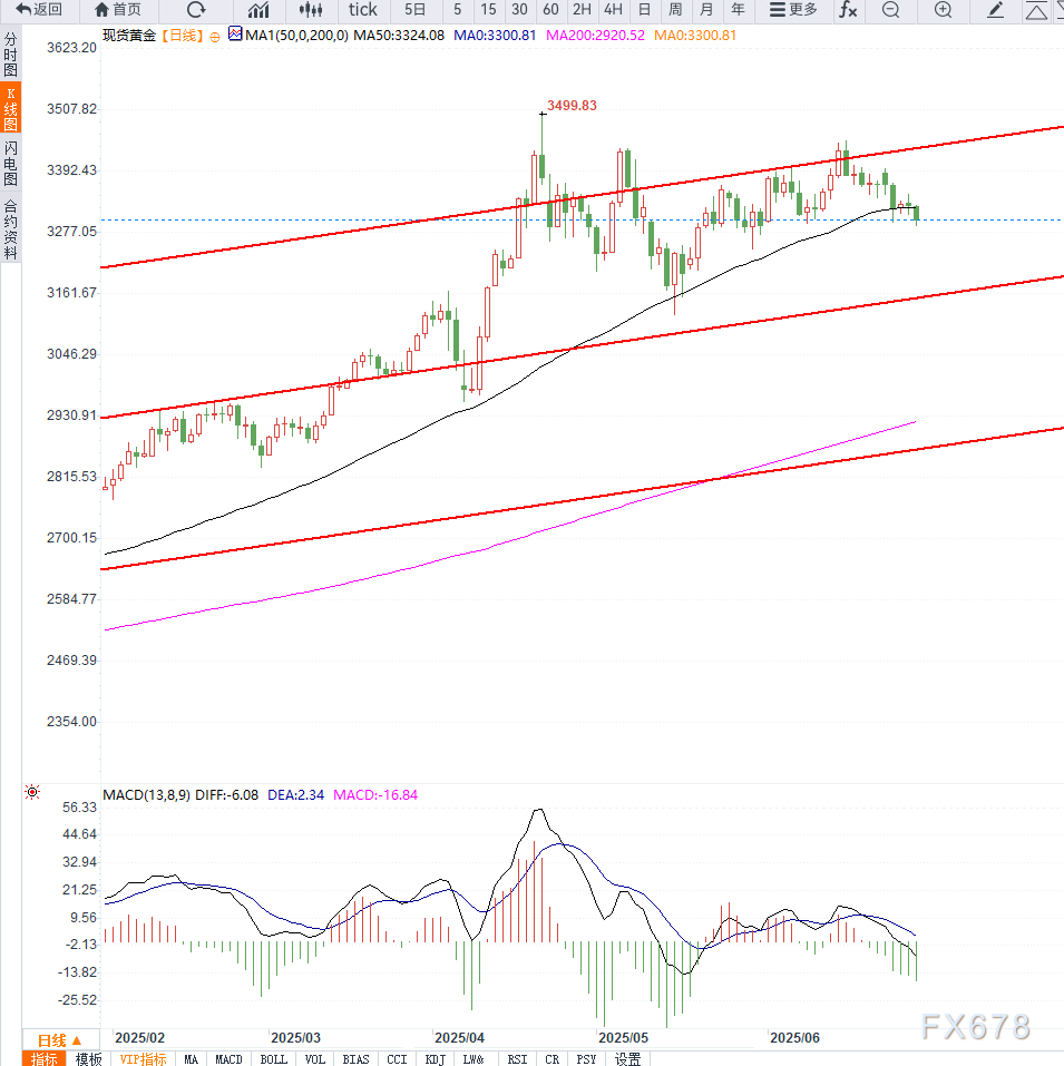 周五即将公布的5月核心PCE物价指数预期环比上升0.1%,同比上升2.6%。若实际数据强于预期,可能支撑美联储维持观望立场并短期内延缓降息,从而暂时提振美元并打压金价。