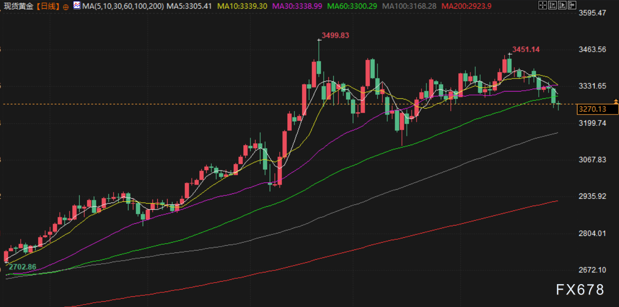 周一(北京时间6月30日),现货黄金下跌,交投于3268.70美元/盎司附近,创一个月来新低,贸易乐观消息提振风险偏好,削弱黄金作为避险资产的吸引力;美原油下跌超1%,交投于64.80美元/桶附近,中东紧张局势缓和叠加贸易乐观消息提振需求预期,且OPEC+计划在8月增产,拖累油价。