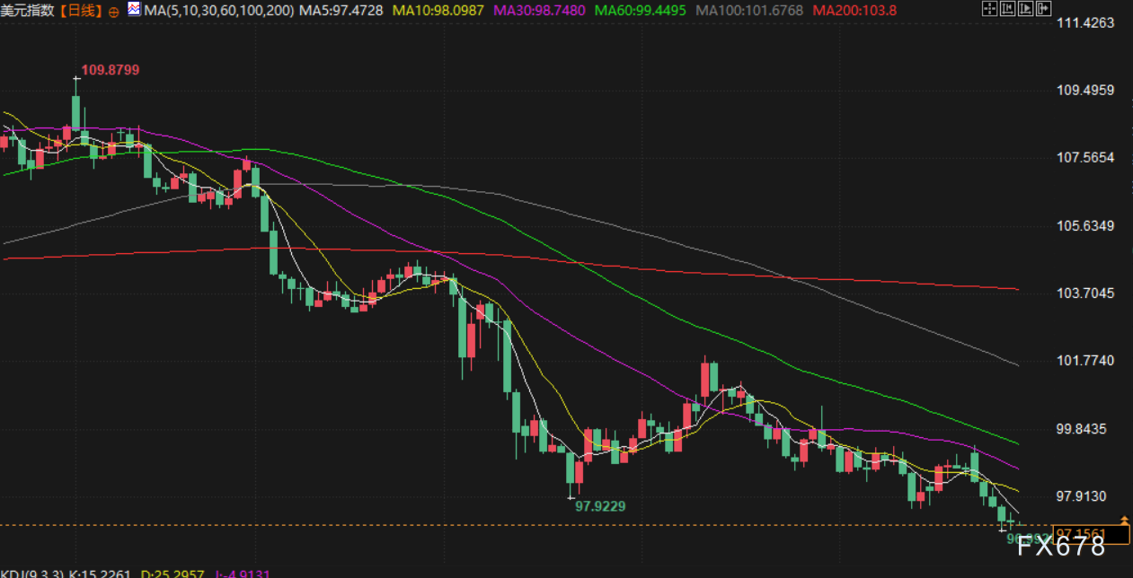 美元指数当日变化不大,报97.36 点,上周下跌1.40%,为5月19日以来最差表现。
