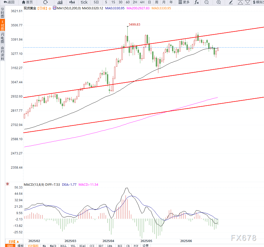 黄金目前正受到美元持续走弱与避险需求的双重支持,尤其是美联储政策预期与特朗普关税策略的不确定性形成共振,推动金价走出双底回升格局。