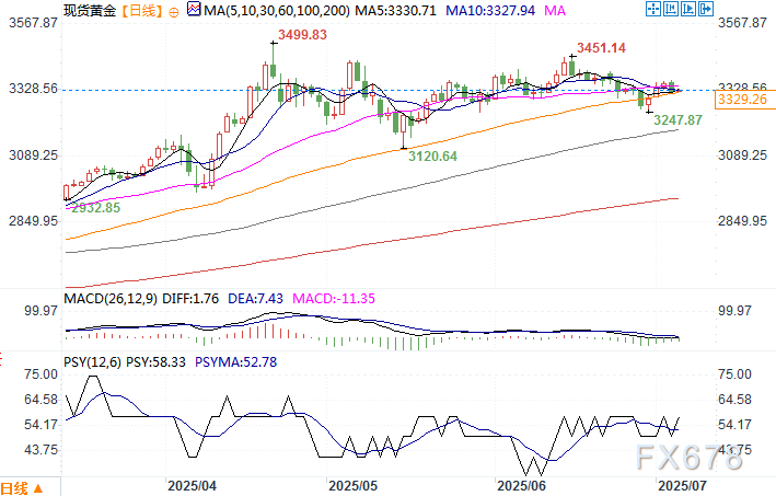 北京时间7月4日10:42 现货黄金 报 3329.26 美元/盎司