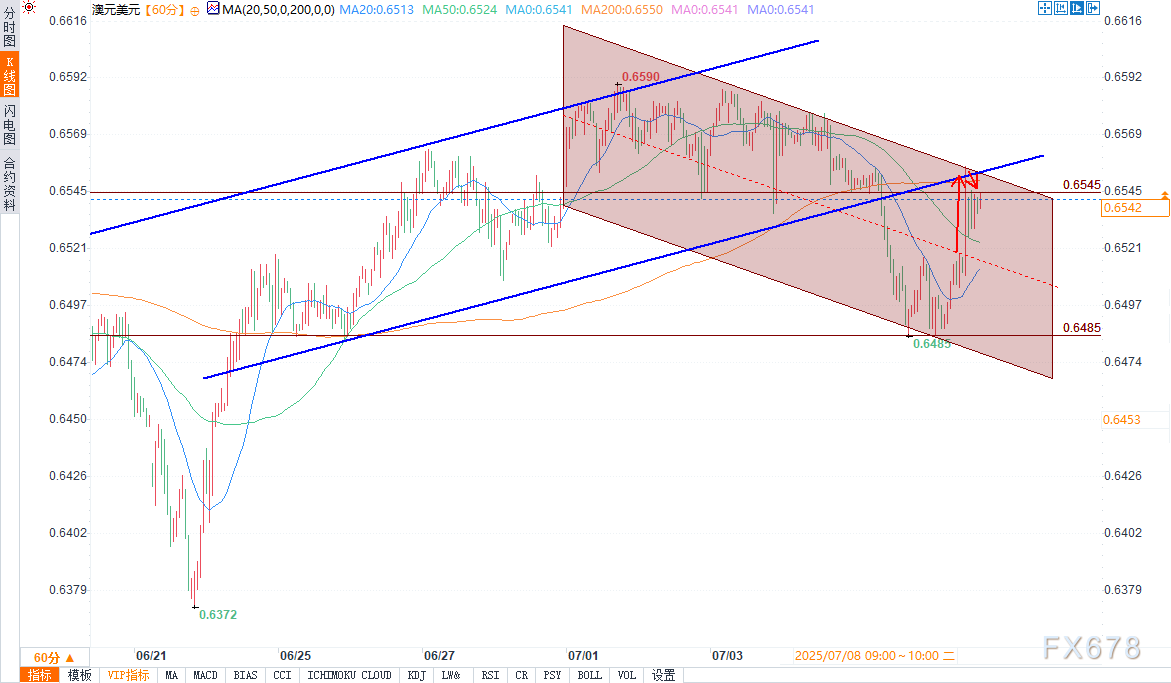 尽管价格一度升至0.6545水平上方,但这一区域未来可能成为阻力位。