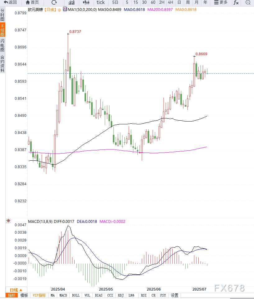 周四欧市早盘,EUR/GBP小幅上涨至0.8625附近。市场乐观预计欧盟与美国之间的关税谈判有望在“数日内达成协议”,避免特朗普政府对欧盟商品加征10%以上的进口关税。