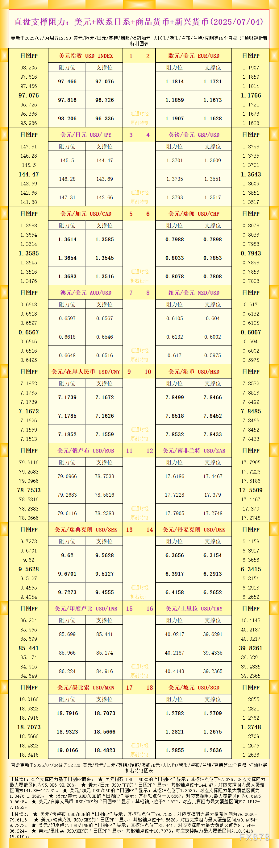exnessapp下载:一张图看18个直盘外汇支撑阻力:美元+欧系日系+商品货币
